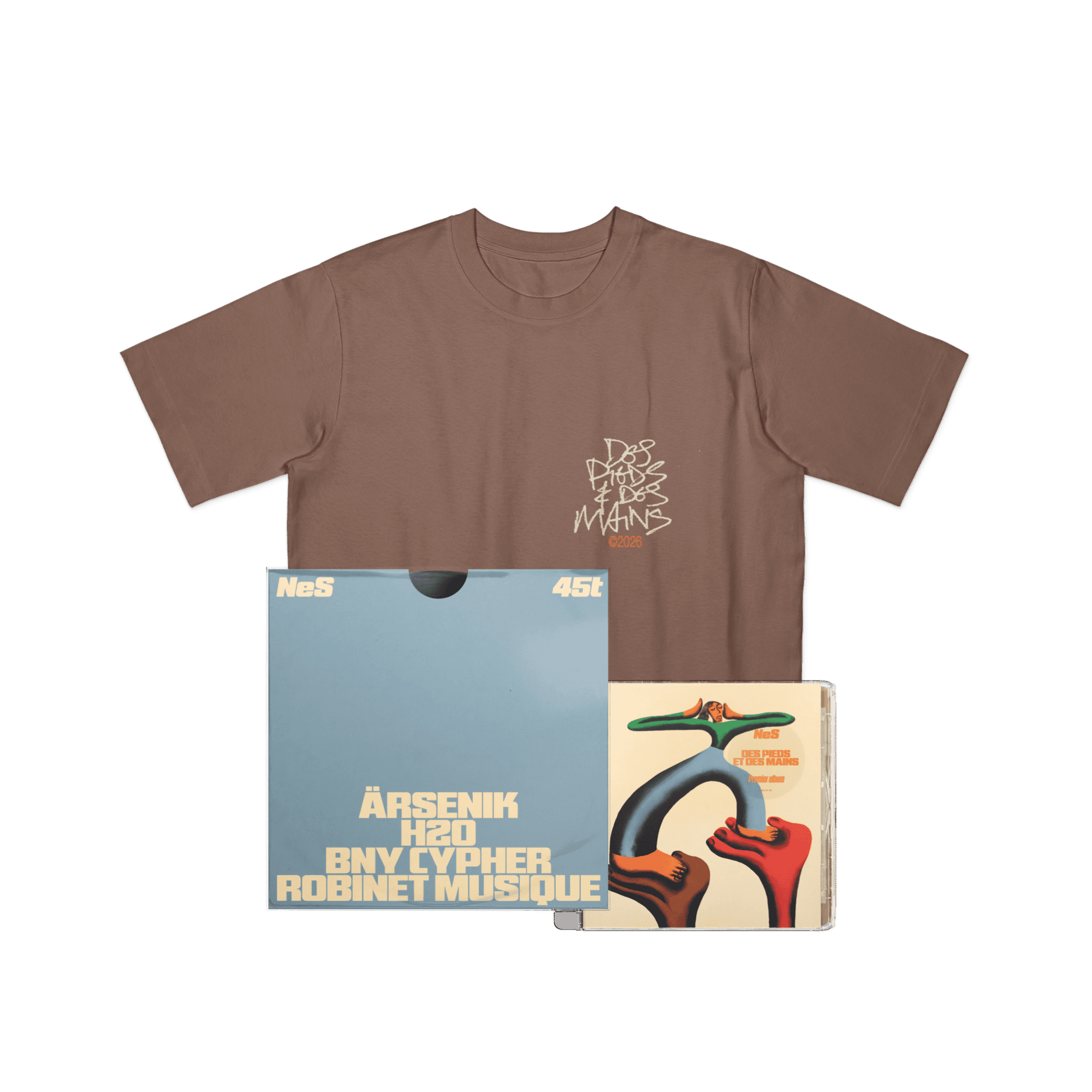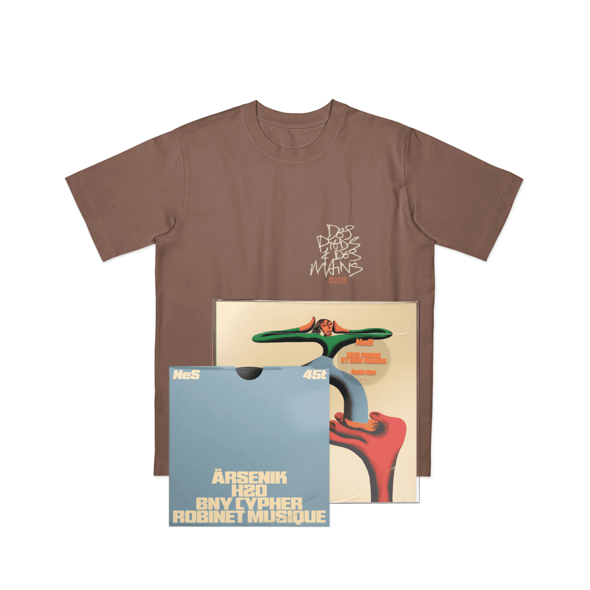 « Des pieds et des mains » + Mini EP (45 Tours) + TEE SHIRT MARRON EXCLUSIF