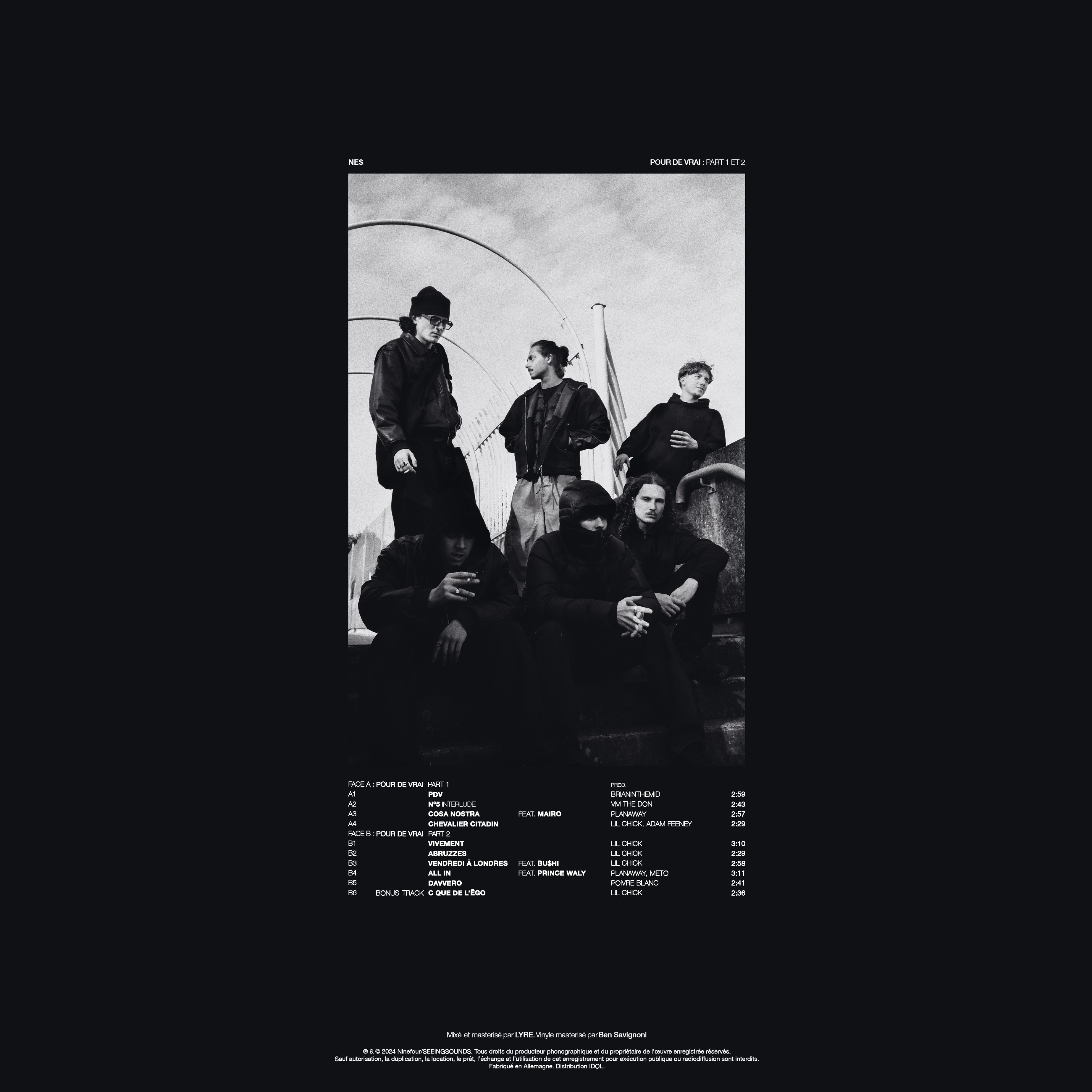 Vinyle NeS « POUR 2 VRAI » (Part 1 & 2)Feat Bu$hi, Mairo & Prince WalyInclus le titre bonus "C QUE DE L’EGO" ainsi que "PDV", "Chevalier citadin" et "Vivement".